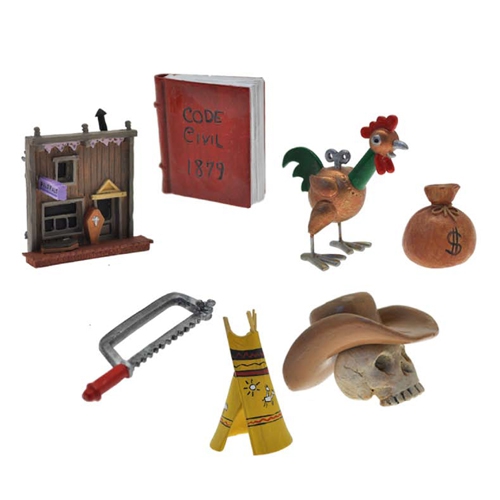 06054 boite n°10 : le Totem affiche de Lucky Luke + 7 objets