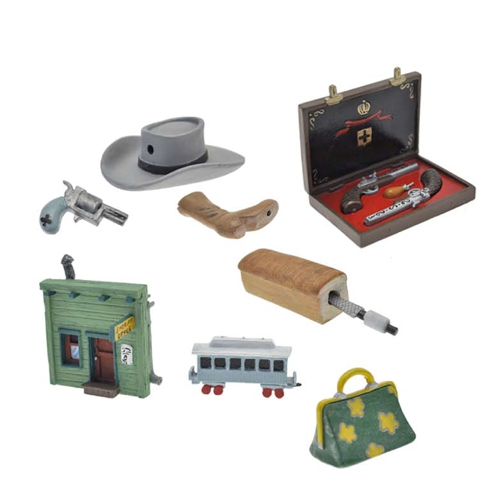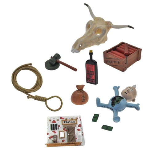 06051 boite n°7 : façade de la maison du Shérif + 7 objets