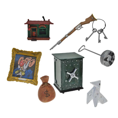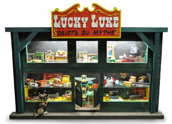 06055 la vitrine des objets du Mythe + la Façade du saloon et Rantanplan + 6 objets
