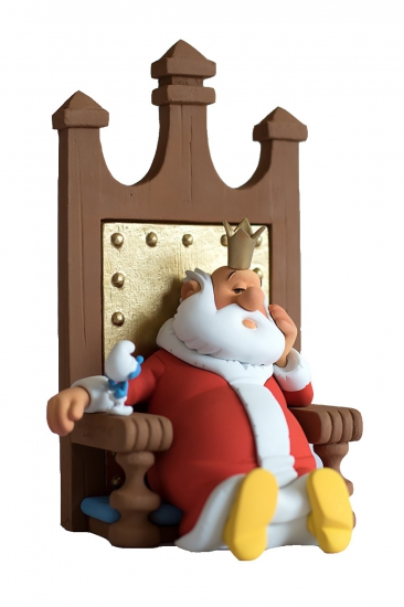 Figurine du Roi qui s'ennui sur son trone....heureusement que le Schtroumpf est là pour le remonter le moral !Fabricant : Fariboles