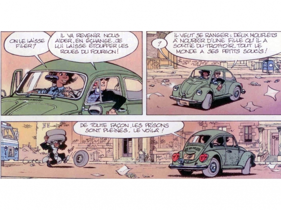 Dans l'album « Tu ne buteras point », Soda utilise sa voiture personnelle une Cox verte 1976, à des fins professionnelles. Mal lui en a pris, dans les dernières pages, elle finira sur le toit après avoir été volée par …un prêtre (un vrai !) et percutée par des gangsters.