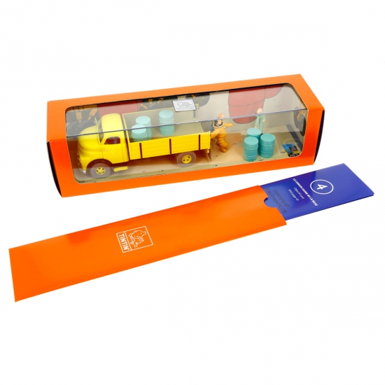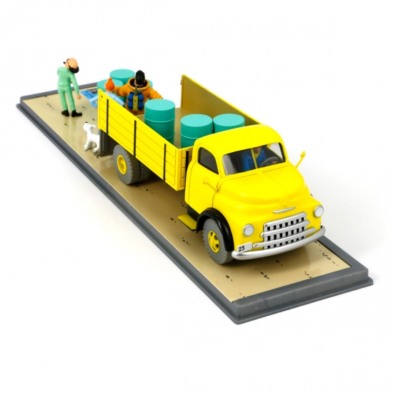 Le camion jaune de la base, à l’échelle 1/43, est issu de l'album Objectif Lune. Les personnages composant cette scène sont le professeur Tournesol, le capitaine Haddock, Tintin et Milou. Ce modèle fait partie de la série des voitures Tintin.